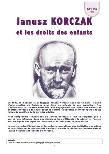 - N° 193 - Juin 2009, pp. 29-32 : « Janusz Korczak (1878-1942), pionnier des droits de l’enfant », par Bernard Lathuillère [