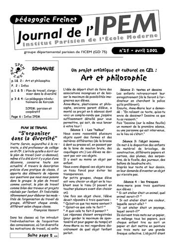 Journal de l'IPEM, n° 21 (avril 2002), p. 3-4- Bulletin de l'Institut Parisien de l'École Moderne