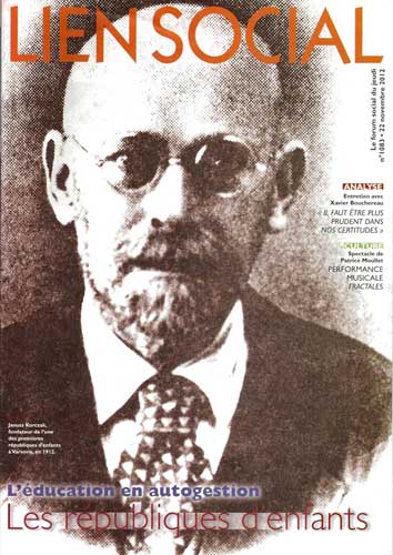 Une superbe Une consacrée à Janusz Korczak, un dossier présentant son histoire et son œuvre et un éditorial de Joël Plantet en rapport avec l'Année Korczak 201 proclamée par la Pologne et l'actualité de l'association. Opportunément paru au moment de notre intervention au Salon du livre de Jeunesse de Montreuil, il a été diffusé sur notre stand à une centaine d'exemplaires.- Le dossier comprend un article de Jacques Trémintin : « L'éducation en autogestion. Les républiques d'enfant », 5 p., illustré par Jitto et une interview de Romuald Avet et Michèle Mialet sur leur ouvrage paru en 2012 consacré aux républiques d'enfants « Éducation et démocratie… ». Merci à l'équipe pour ce beau numéro.
