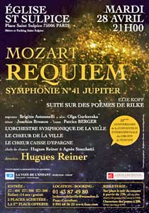 - Avec Mozart au programme, l'église Saint-Sulpice était comble. La soirée a rencontré un formidable succès avec plus de mille spectateurs réunis, vite conquis par le charisme et l'humour communicatif du Chef. Le concert a été très réussi, avec le nouvel Orchestre Symphonique de la Ville, des chœurs puissants, des solistes en forme. Les silences furent parfaits, pas un applaudissement décalé, pas un son parasite. Impressionnant !
